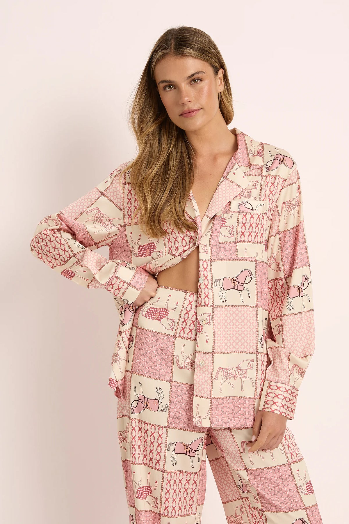 Made from sustainably sourced, OEKO TEX® certified fabric, the Equestrian Print pyjamas are designed to move effortlessly between moments of rest and ritual. Elevated yet wearable, they capture the balance of strength and softness that defines this year.