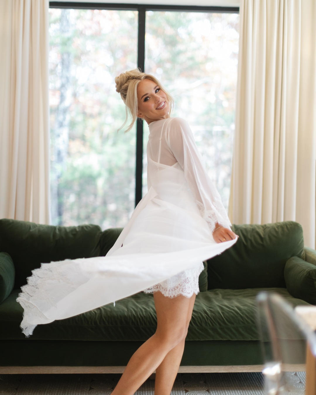 I wore the Helena Lace Robe and Sian Slip. I wanted my getting ready look to be romantic and regal, but also feel like myself. Wearing these pieces surrounded by the girls who have loved me throughout all the stages of life made my wedding morning feel so cinematic and sentimental.