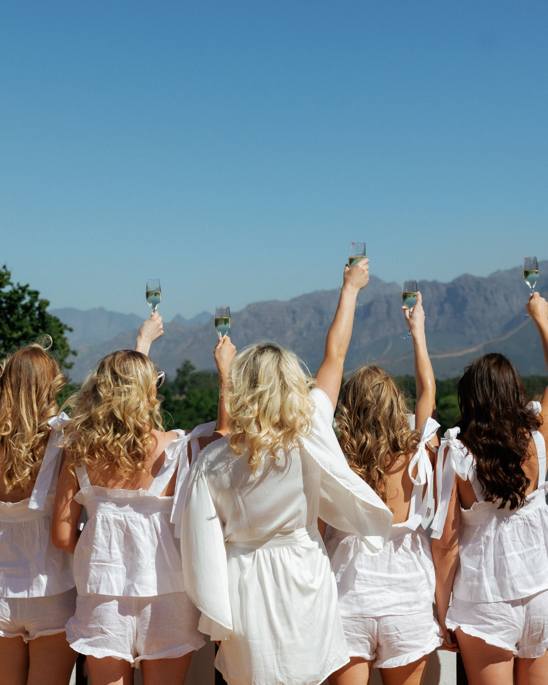 The team made me feel like I was the most beautiful bride in the world, as well as making me feel comfortable and confident in everything that I tried on. I wore the Athena Sequin Beaded Robe over the Miami Jacquard Slip, along with the Luna Robe. My bridesmaids looked stunning in the Libby Linen Frill Cami Set.