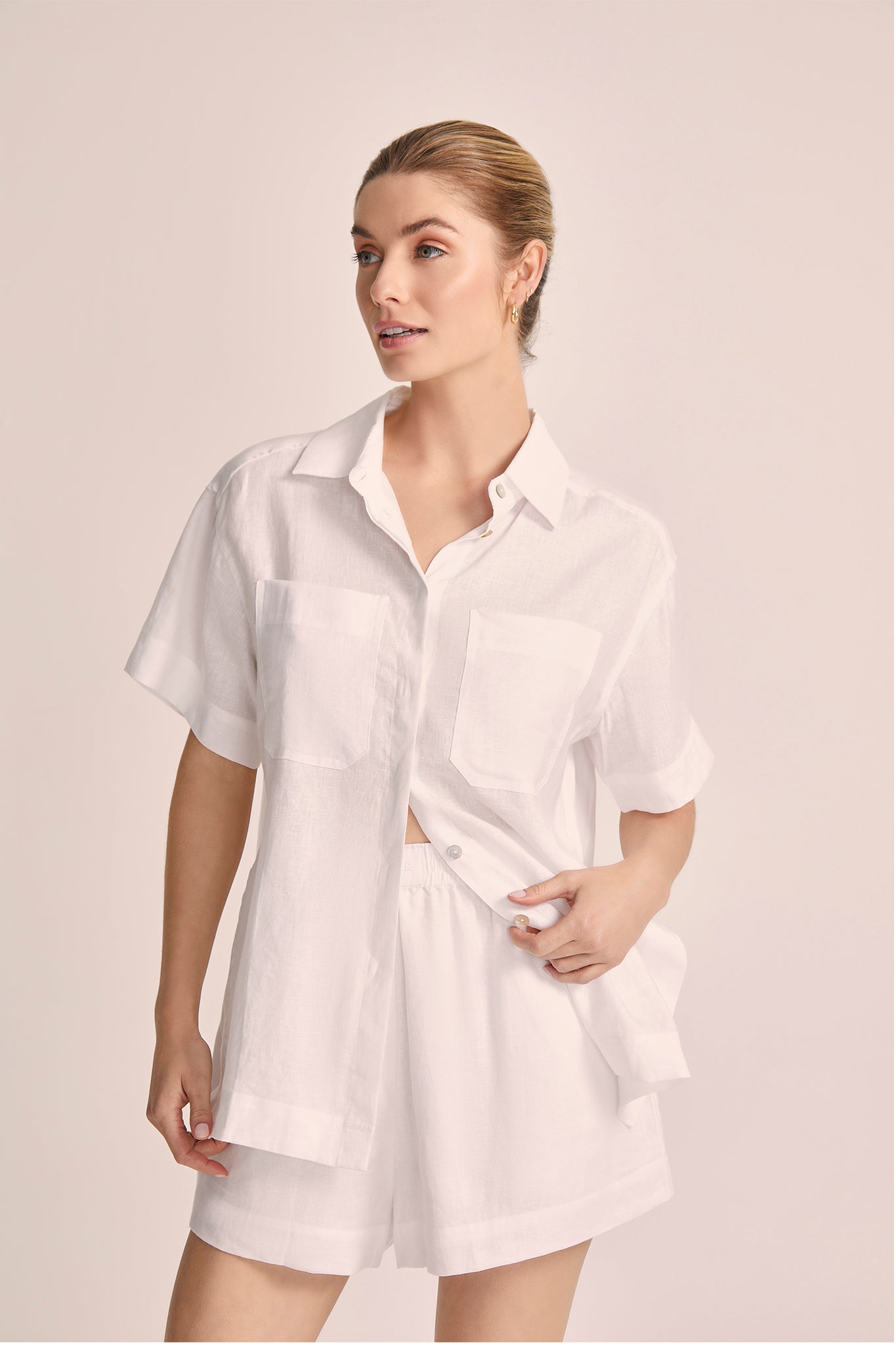Discover effortless elegance with the Homebodii Safari Linen Pyjama Set, a perfect blend of style and comfort for the bedroom and beyond. Beloved by influencers and adored by the street style set, this 100% French stonewashed linen ensemble is casually chic and ultra-comfortable. The blush-colored set features wooden button and  Homebodii patch, offering a relaxed fit that keeps you cool, whether you're lounging at home, enjoying breakfast with friends, or heading to the beach. Crafted from 100% sustainable linen this set is as eco-friendly as it is stylish. Designed in Australia, the Safari Linen Pyjama Set is a sleepwear and lounging staple you'll cherish for years to come.