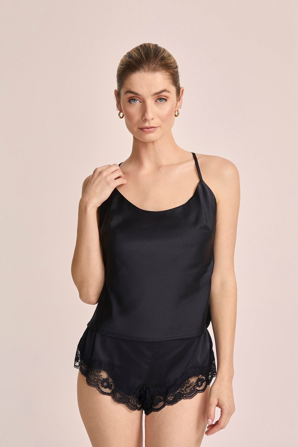 Whether you're enjoying a quiet night in or hosting a gathering with loved ones, The Leda Cami Set effortlessly combines comfort and allure. With its luxurious feel and delicate detailing, it invites you to embrace moments of relaxation with a touch of sophistication.