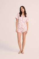 With a relaxed fit and smooth finish, these pyjamas are as delightful to wear as they are to look at, making them an ideal choice for cosy nights in or leisurely mornings. Experience the perfect blend of style and relaxation with the Sweet Berry & Bows set, where comfort meets chic.