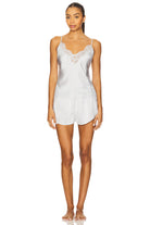 Embrace your daring side with the exquisite Sian Lace Satin Cami Set! Crafted from beautiful eggshell blue cotton lace adorned with a stunning floral pattern, this set is a true showstopper designed to flatter your figure.