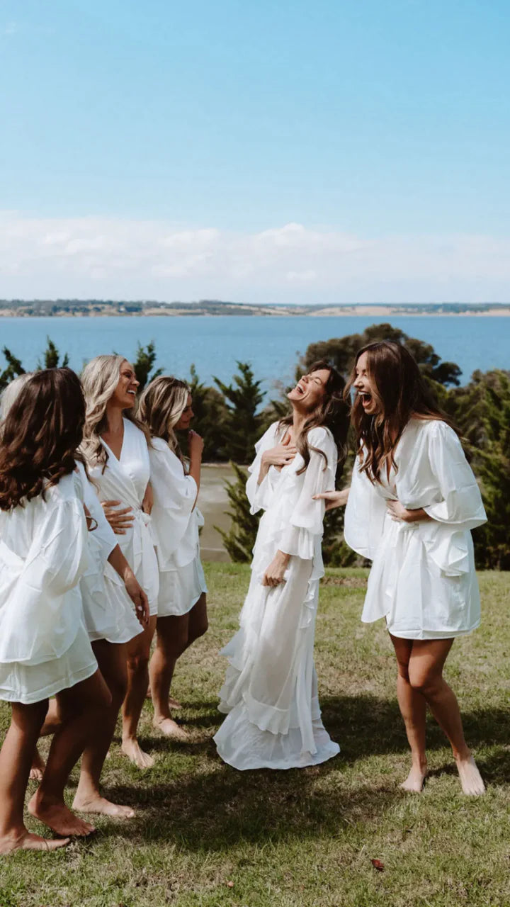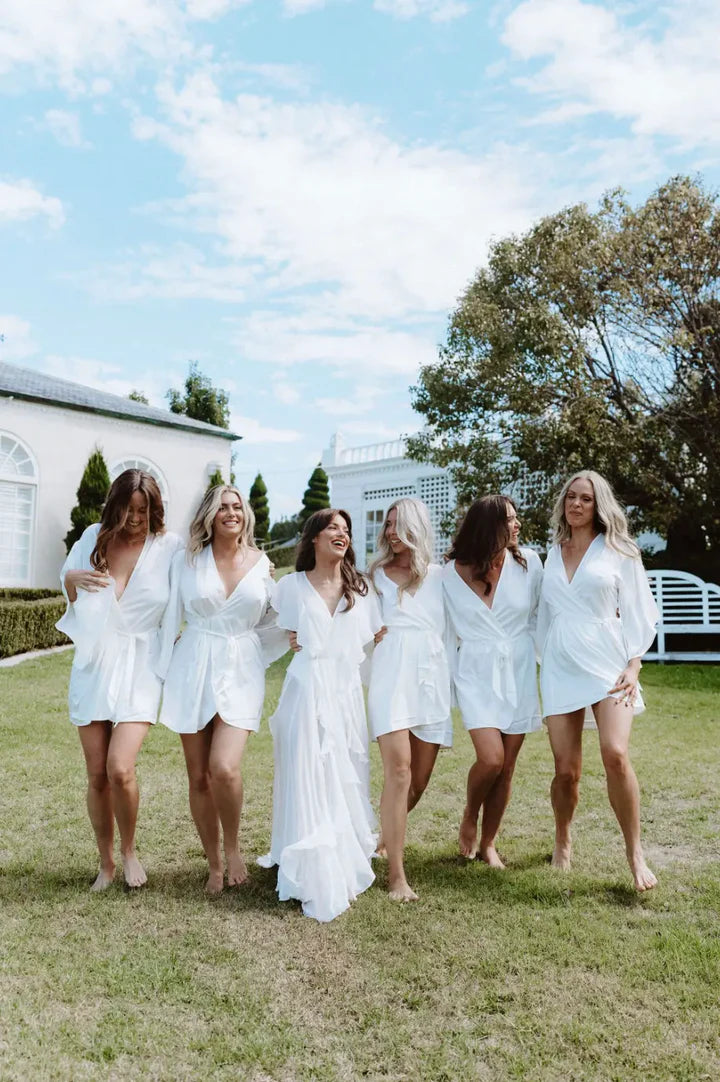 A special something for the blushing bride and her girls … make your morning preparation an elegant affair, as well as a gorgeous lasting memory with our Homebodii Bridal Robes collection! A beautiful robe is the perfect morning dressing gown for you and your bridal party, because it’s easy to slip on and off without disturbing your hair and makeup. It also makes the perfect gift for your beautiful bridal party to thank them for all their help and support!