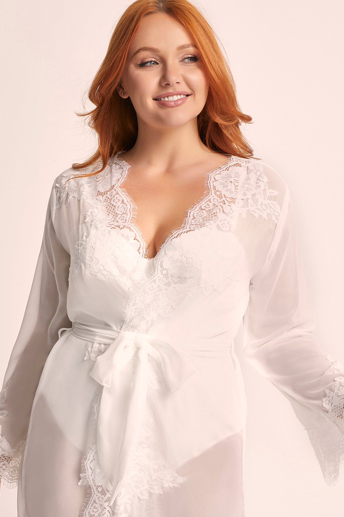 Designed to flatter all figures, the Helena Lace Robe transforms every moment into something memorable — elegant, ethereal, and forever classic.