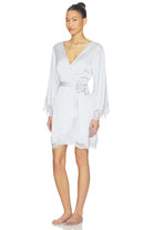 Crafted from luxuriously soft satin and adorned with delicate lace, this robe was designed for those moments when you want to feel extraordinary. The sewn-in waist tie cinches at just the right place, creating a silhouette that accentuates your curves beautifully. Whether you're sipping champagne at an elegant soirée, getting ready for your special day, or enjoying a romantic evening wrapped in beauty, this robe effortlessly radiates glamour and sophistication. Let the delicate lace caress your skin and the soft satin drape gracefully around you, creating a sense of pure indulgence.
