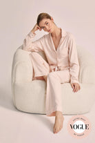 The TENCEL™ Lyocell fibers provide a sumptuous hand feel and breathability, supporting your body's natural temperature regulation. The cellulosic fibers effectively absorb and release moisture, ensuring ultimate comfort all night long. Available in a beautiful blush colour with white piping, our TENCEL™ sleepwear is a must-have addition to your wardrobe. Treat yourself to the luxury you deserve!
