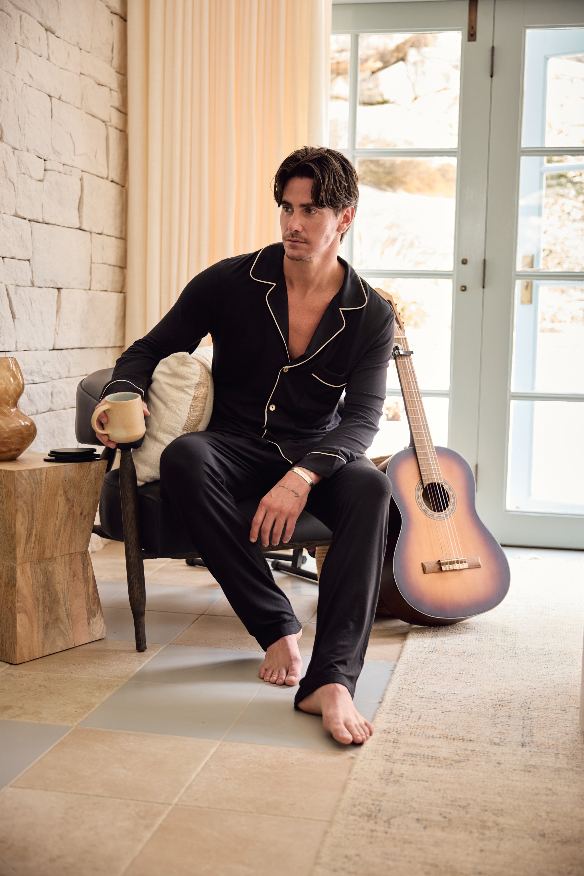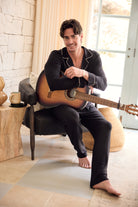 Pedro Tencel™ Lounge Pyjama Set - Black with Bone Piping