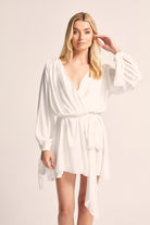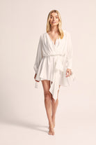 Introducing the Homebodii Wrap Mini Robe, a captivating piece that embraces the mini wedding dress trend with sophistication and style.