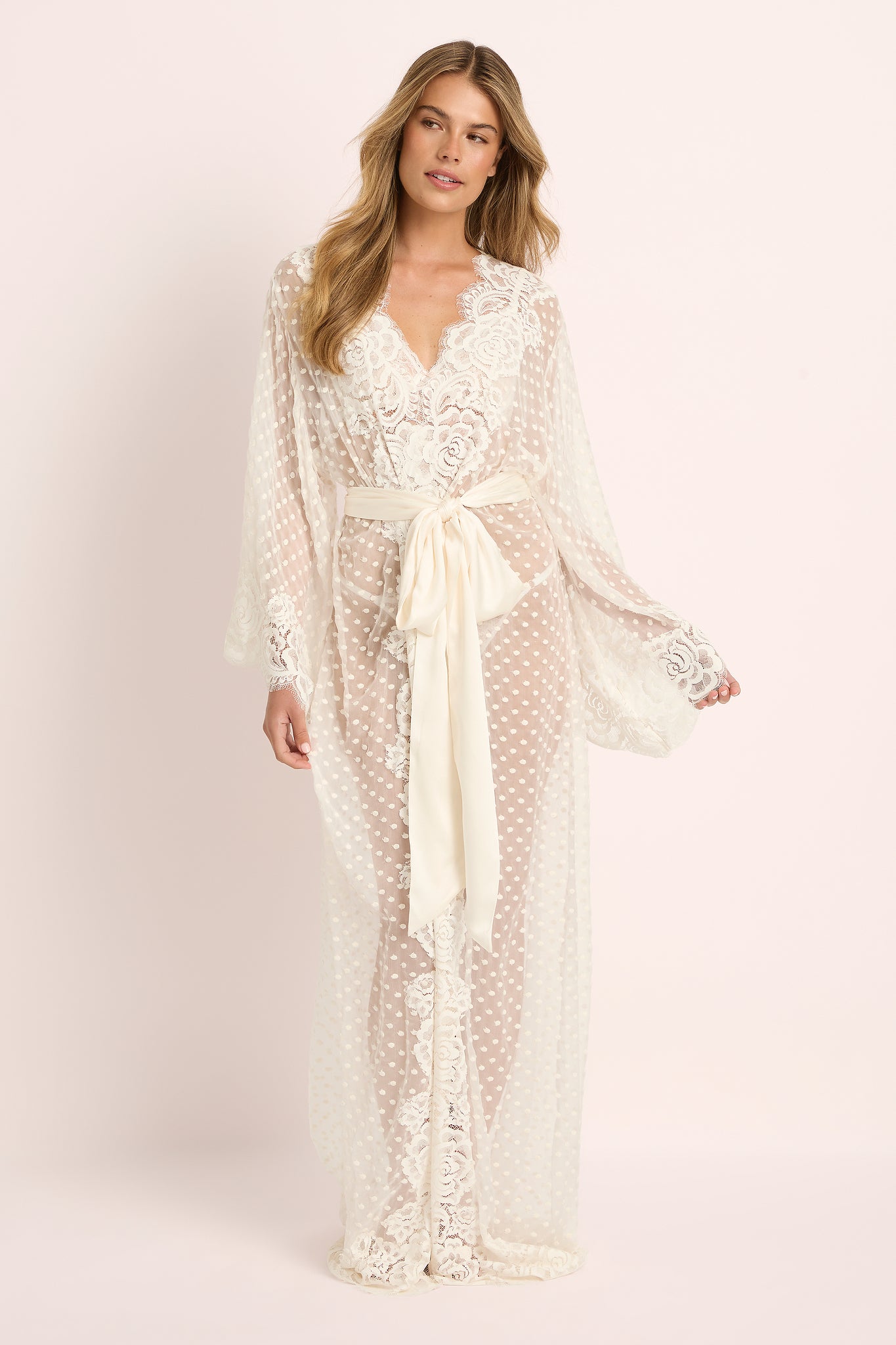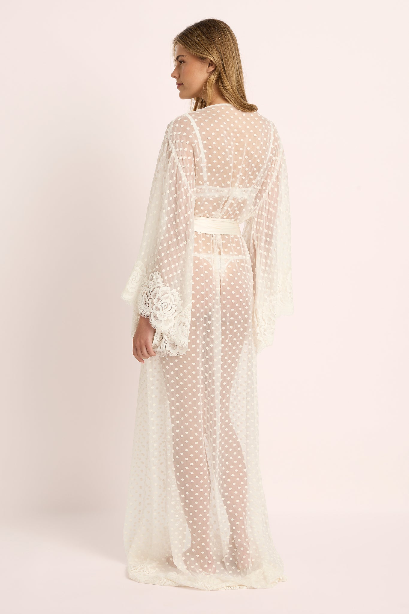 Chloe Polka Dot Lace Robe Maxi Ivory
