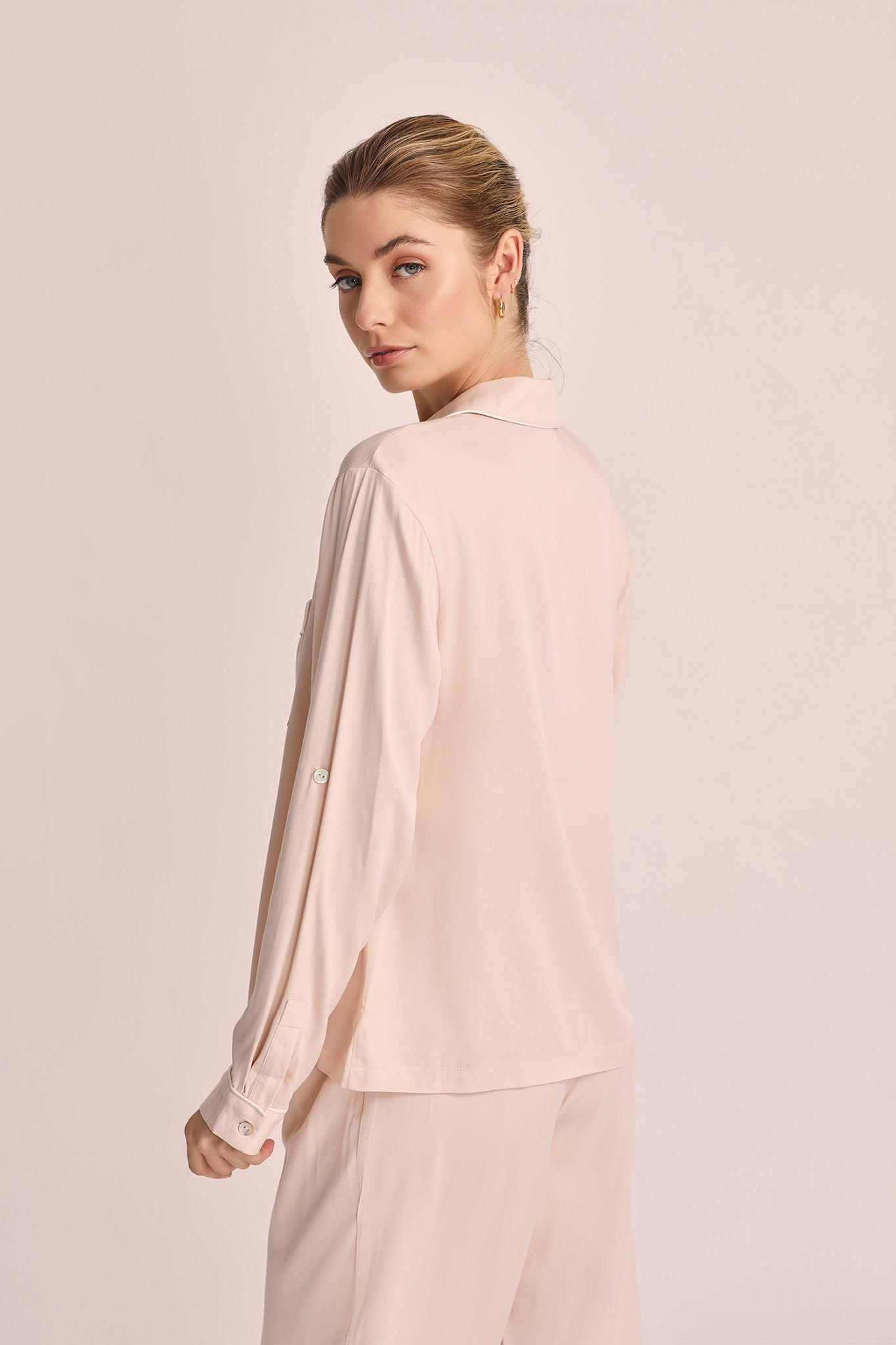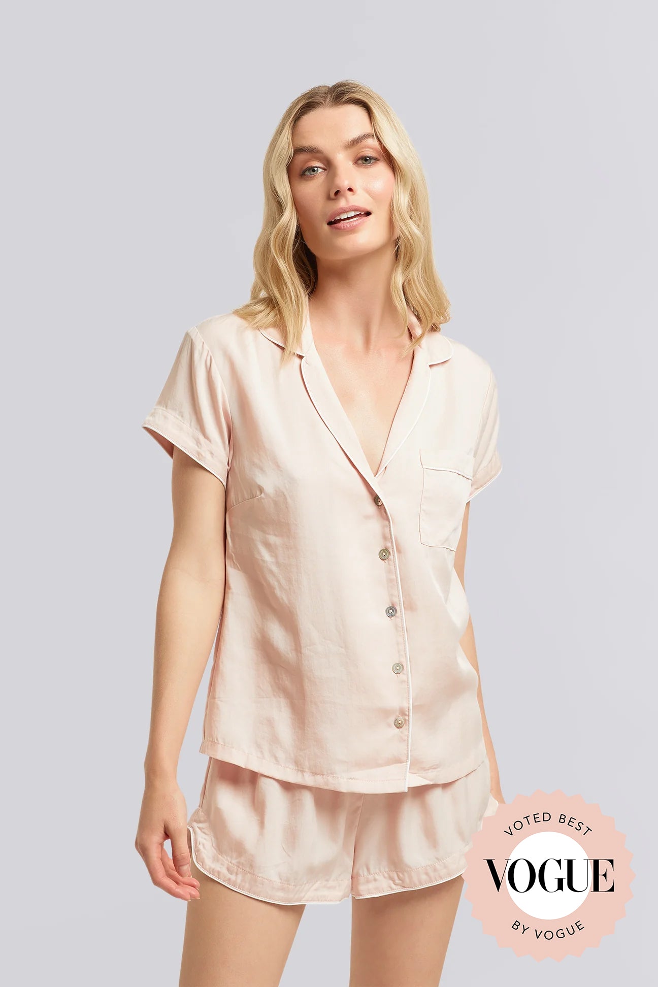 Eva Short Tencel™ Pyjama Set - Blush with White Piping