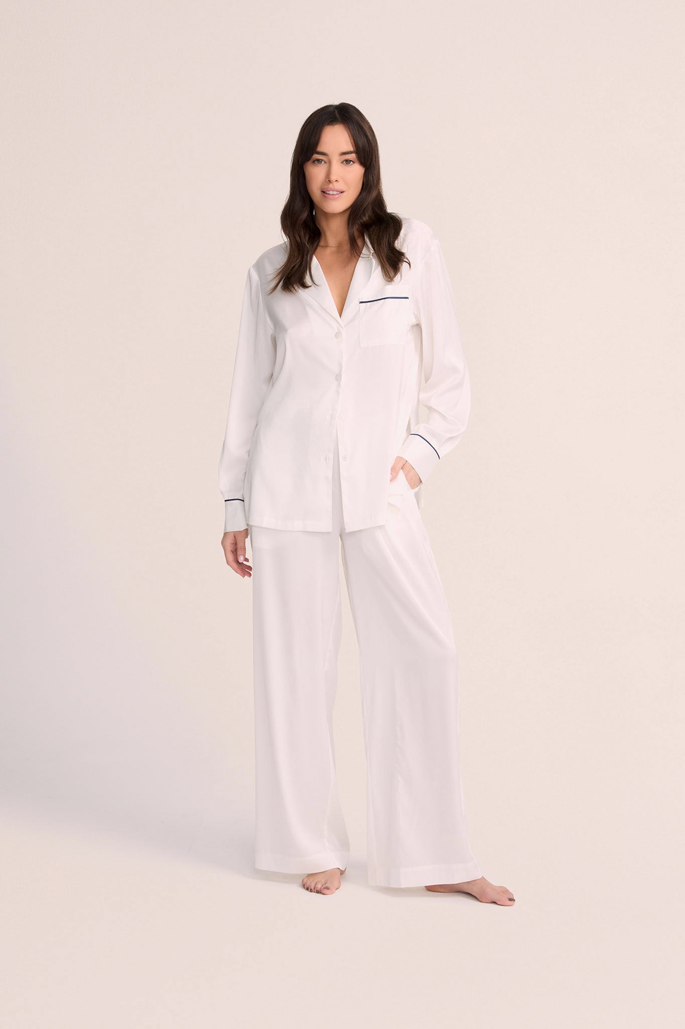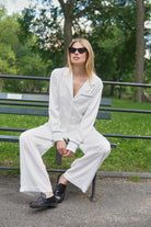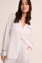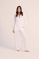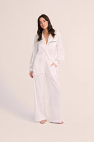 Grace Lounge Pyjama Set - White with Navy Piping