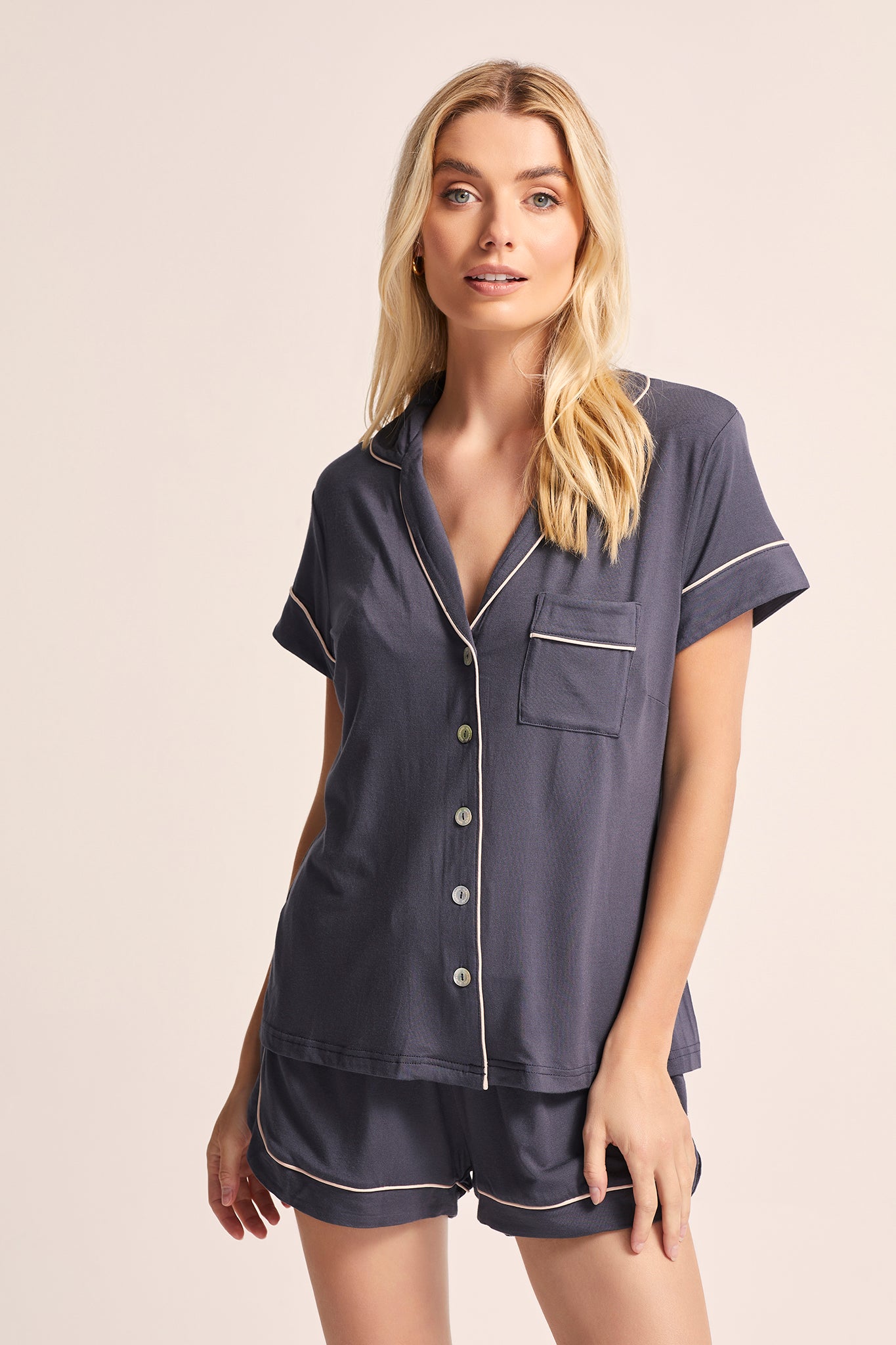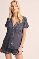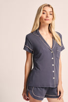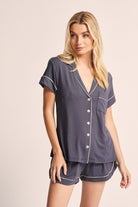 Petra Tencel™ Pyjama Set - Charcoal with Blush Piping