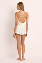 The Rosie Cami Set showcases a delicate rose print on a pristine white base, offering a timeless and feminine aesthetic. The cami features adjustable straps for a customizable fit, while the matching shorts include an elasticated waistband for ultimate comfort.