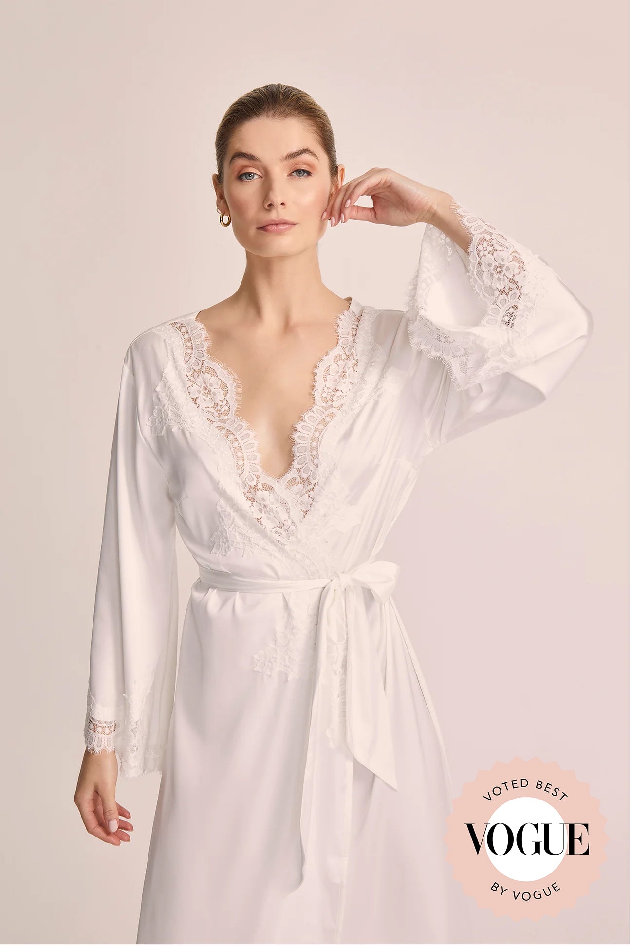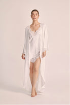 An ideal selection for any special moment, the Sian Lace Robe guarantees you'll feel like a true goddess. Whether you're savoring champagne at a sophisticated soirée or enjoying an intimate evening with your loved one, this robe effortlessly radiates timeless allure. Immerse yourself in the lap of luxury with the Sian Lace Robe.