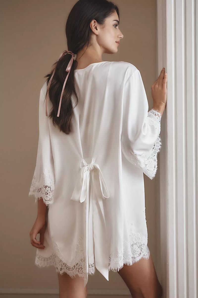 An ideal selection for any special moment, the Sian Lace Robe guarantees you'll feel like a true goddess. Whether you're savoring champagne at a sophisticated soirée or enjoying an intimate evening with your loved one, this robe effortlessly radiates timeless allure. Immerse yourself in the lap of luxury with the Sian Lace Robe.