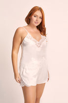 If you're looking for something adventurous and original, the Sian Lace Satin Cami Set is made for you! Crafted from exquisite white cotton lace with a captivating floral pattern, this set features a bias cut for a flattering and comfortable fit.
