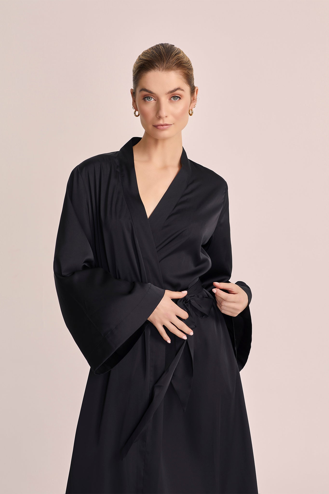 Indulge in the epitome of luxury with the Vivi Robe, a stunning creation crafted from sumptuous satin fabric, this robe exudes elegance and sophistication, promising to elevate your lounging experience to new heights.